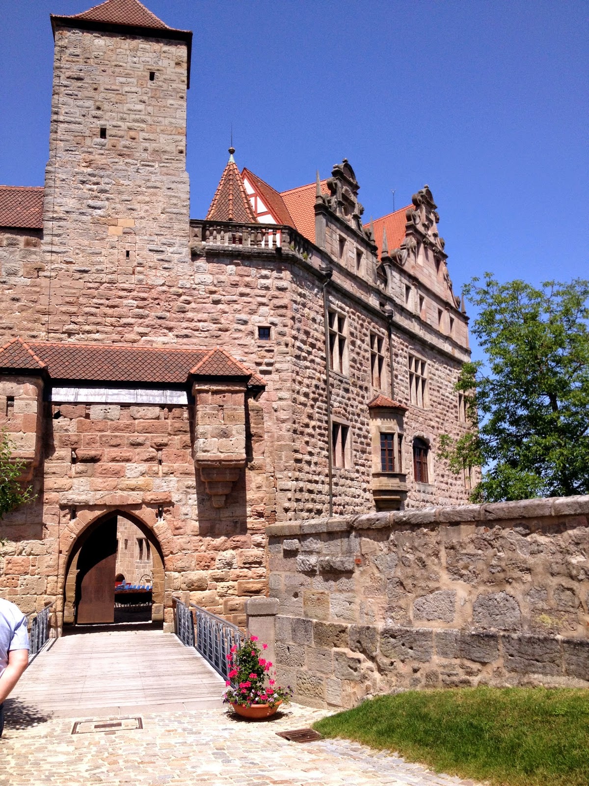 És vissza is kanyarodnék az alaptémához, a gyönyörű Cadolzburgi várhoz. Egyszer már jártunk ott, de anno lekéstük az idegenvezetést. Mivel olvastuk, hogy 2014.junius 10-vel átépítés miatt bezárják a várat, hát gondoltuk hajrá. A vasárnapi 14.00 órás idegenvezetést még elcsípjük. Biztosan nem lesznek sokan, hiszen ki az a hülye (rajtunk kivül természetesen), aki 36° celsius fok forróságban nem a vizparton, vagy a medencében csücsül … Hát odamentünk. Egy jó órával korábban. Bejártunk mindent a vár körül. De meleg volt. Nagyon meleg. Mindegy, megvárjuk az idegenvezetést.