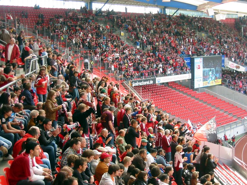 Akkor vissza az 1FCN – Freiburg meccsre, jó? A jegyünk egy nem túl jó, de nem is túl rossz szektorba szólt, bár szerintem túl magasan ültünk. Fölöttünk volt még jó pár sor, ültek még ott is emberkék bőven, de akkor is: nekem a pálya messzi volt. Apus szerint a hely nicht schlecht, de természetesen össze se lehet hasonlítani a Haupttribünnel (fő tribün), ahol ő VIP-kártyával szokott üldögélni. (2 ismerőse az egyesülettől szokta néhanapján a saját VIP-kártyáját a részére átadni, de csak olyankor, amikor ők valamilyen oknál fogva nem tudnak kimenni a meccsre. Ja, és sajnos mindig csak egyet. )