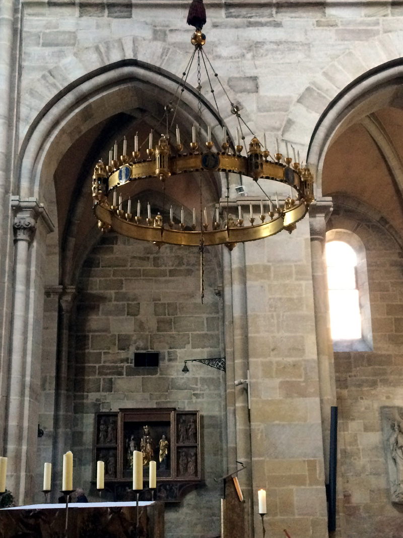 Most maradnék is ezen a vonalon, a királyok és császárok vonalán, a főszerepben a híres Bamberger Reiter, azaz a Bambergi Lovas. A lovasszobor a dóm nyugati kórusának pillérét ékesíti. Őszinte leszek, ezt a mondatot a wikipédiában találtam, onnan vettem át, de én se értem. A szobor belül van a dómban, eddig oké. Láttam. De a nyugati kórusra rá nem jöttem volna, sőt …. talán ha valaki elmagyarázná mit jelent, építészetileg nem vagyok a toppon.