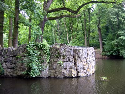 A kastélypark egy részlete a tavacskával