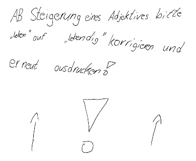 Volt egy német AB is, amelyikben a melléknév fokozása volt a téma. Ez az Adjektiv Steigerung. Az apukája észrevett benne egy hibát, ezért a fiam megkért, hogy mielőtt kinyomtatnám, legyek szíves javítsak benne.