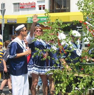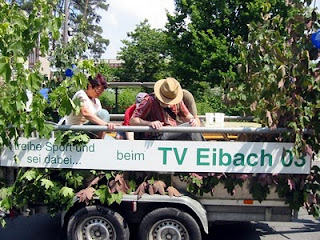 A program a mi régi május 1-hez hasonlóan, felvonulással kezdődik. A menetet, vagyis ahogy itt nevezik a Kärvaumzug -ot a városrész sportszakosztályai és egyéb szövetségei teszik ki. A kisfiamék sportegyesülete is minden évben jelen van, csak sajnos idén nagyon kevés gyerek jött el a kézilabdásoktól. 🙁 Sokan megjelentek azonban az egyesület „Faustball” szakosztályától, ami nagyon menő. A hapsik éveken keresztűl Német Bajnokok voltak, a női csapat most kapaszkodott fel az elsőosztályba. Jut eszembe, fogalmam sincs, hogy Magyarországon létezik-e egyáltalán ez a fajta sport? Hogy a Faustball egyáltalán magyarul mit jelenthet nem is tudom, ha megpróbálkozom a fordítással, akkor azt mondanám „Ököllabda”. Utánanézni lusta vagyok, valaki segíthetne! 😉