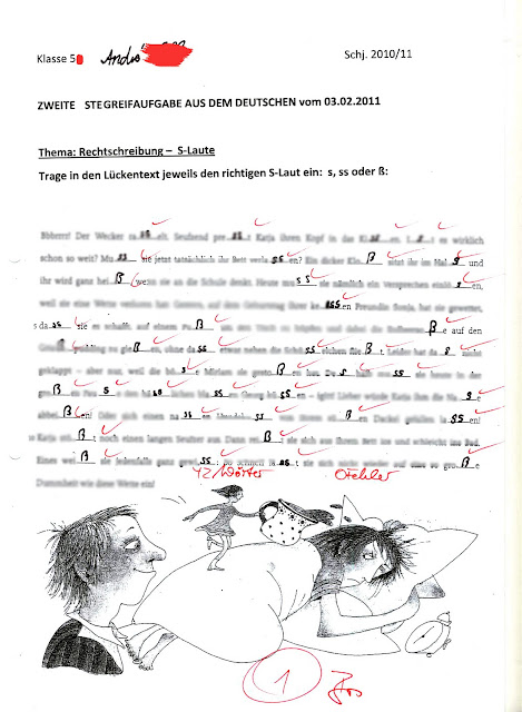 Nem minden büszkeség nélkül szeretném megmutatni a múlt héten írt német tesztjét. A 27 gyerek közül csak kettőnek sikerült egyesre (itteni legjobb jegy) megírnia a dolgozatát, de csak egyetlen egy gyereké lett teljesen hibátlan. Ez a gyerek a kisfiam. Maximális pontszámot ért el, hát kérem még az ég is nevetett, annyira boldog volt!