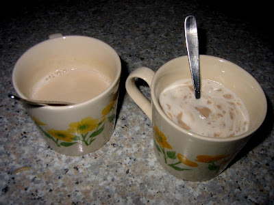 Mára a sajtos pogácsával készültem. A falatot már legalább tízszer megsütöttem, de mégcsak most, a legutolsónál sikerült puhára. Nem gondoltam, hogy valaha is sikerülni fog.  (bár nekem és a kisfiamnak az előző gumipogácsák is nagyon ízlettek, büszkék voltunk magunkra, legalább le nem égettük …)  Rádöbbentem, a titok az élesztőben, pontosabban a kelesztésben van! Azt csesztem el eddig mindig, kivétel nélkül. Ugye a receptben lazán csak odavetik, hogy megfuttatjuk az élesztőt a langyos tejben …. stb. Ez kérem egy kezdőnek nehezen érthető utasítás. Hogy futtatjuk meg? Keverjük-kavarjuk, mi lesz vele? Most már tudom. A képen két csosza látható. A jobb oldaliban a „felfuttatott” élesztő, a bal oldaliban pedig a mozgásra képtelen (nem tejeskávé). Tanácsom, hogy mindig 2 csomag élesztőt vegyetek, mert előfordulhat, hogy valamiért az élesztő nem fut fel a tejben!