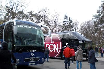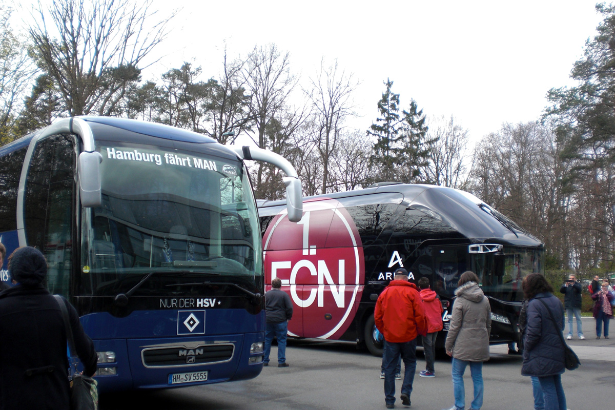 A csapatunk a HSV (Hamburg) ellen játszott. A stadion felé, az S-Bahnban ülve (olyasmi mint a HÉV) kifogtuk a „hotvolleet”. Úgy tűnt, az összes atomszerűen betintózott és józan HSV drukker a mi vagonunkba szállt be. Annyira kabarés volt a helyzet, mindenhol kék sálas hamburgi focidrukkerek, akik ordítozva énekeltek és szlopálták a sert, mi pedig ott ültünk jól fésülten, mosolyogva és természetesen nagyon vigyázva arra, hogy mit mondunk és mennyire grimaszolunk.