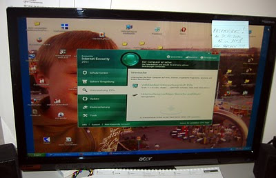 Tegnap este egyszercsak a vállam fölött áthajolva ráragasztott egy post-it cetlit a monitorára. A cetlin szereplő szöveg miatt rám jött a vigyorgás, ugyanis Papchen (ahogy a kisfiúnk őt hívja) ma délelőtt kb. 11-órától bejelentkezett a saját gépére, kvázi helyet foglalt magának! :)))) Még van egy kis időm, mivel még nem jött vissza egy fontos, fél 9-kor kezdődött megbeszélésről. 🙂