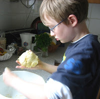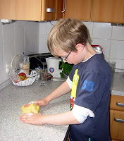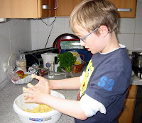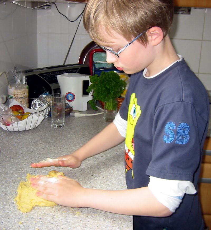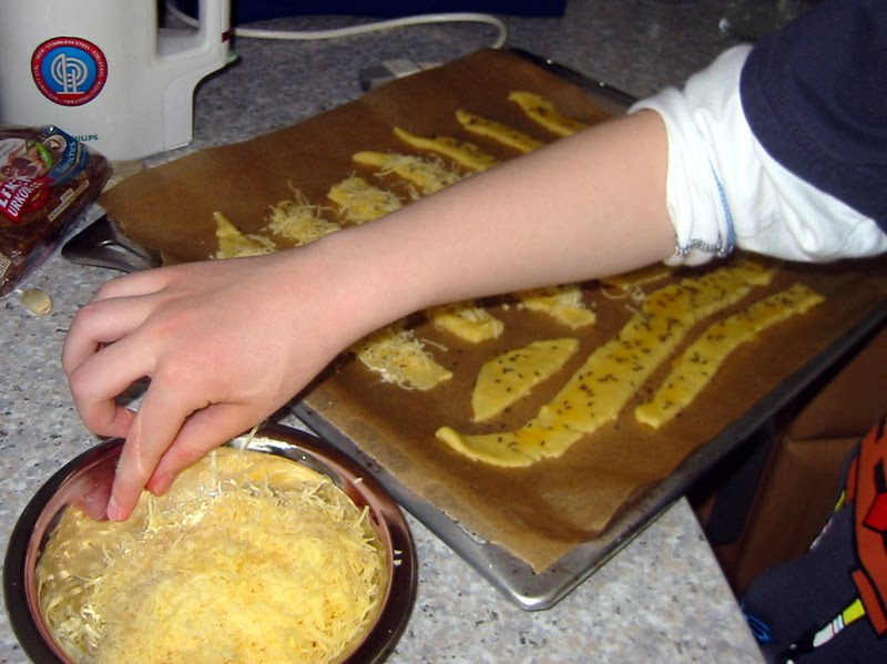 Addig is (mert nagyon ideges vagyok 😉 ) valami könnyedebbet: nagy meglepetésemre, a kisfiam élvezte a sajtos stangli sütését, még a trutyit is lendülettel gyüszmékelte. El is neveztük André Backstubéjának a konyhát. 🙂